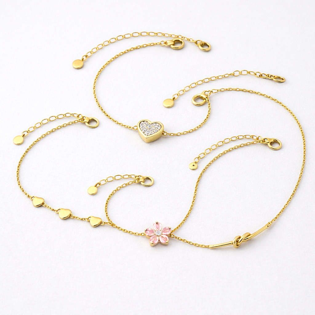 La Collection Fantaisie réunit des bracelets élégants et intemporels, pensés pour symboliser le lien, l’amour, la liberté et la connexion. Chaque bracelet est fabriqué en acier inoxydable plaqué or 18K, alliant raffinement, durabilité et brillance. Résistants à l’eau et conçus pour durer, ils ne noircissent pas et sont parfaits pour un usage quotidien.